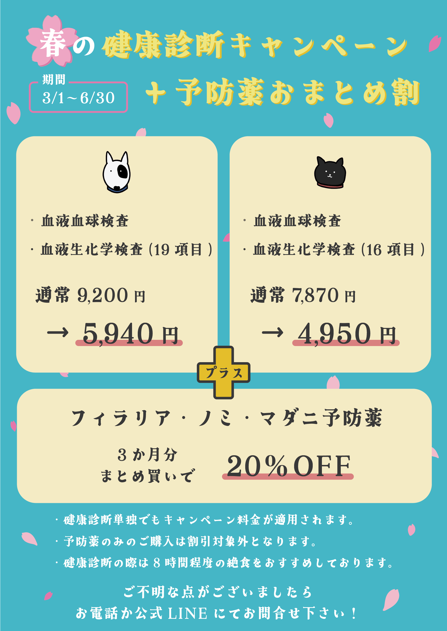 春の健康診断+予防薬おまとめ割